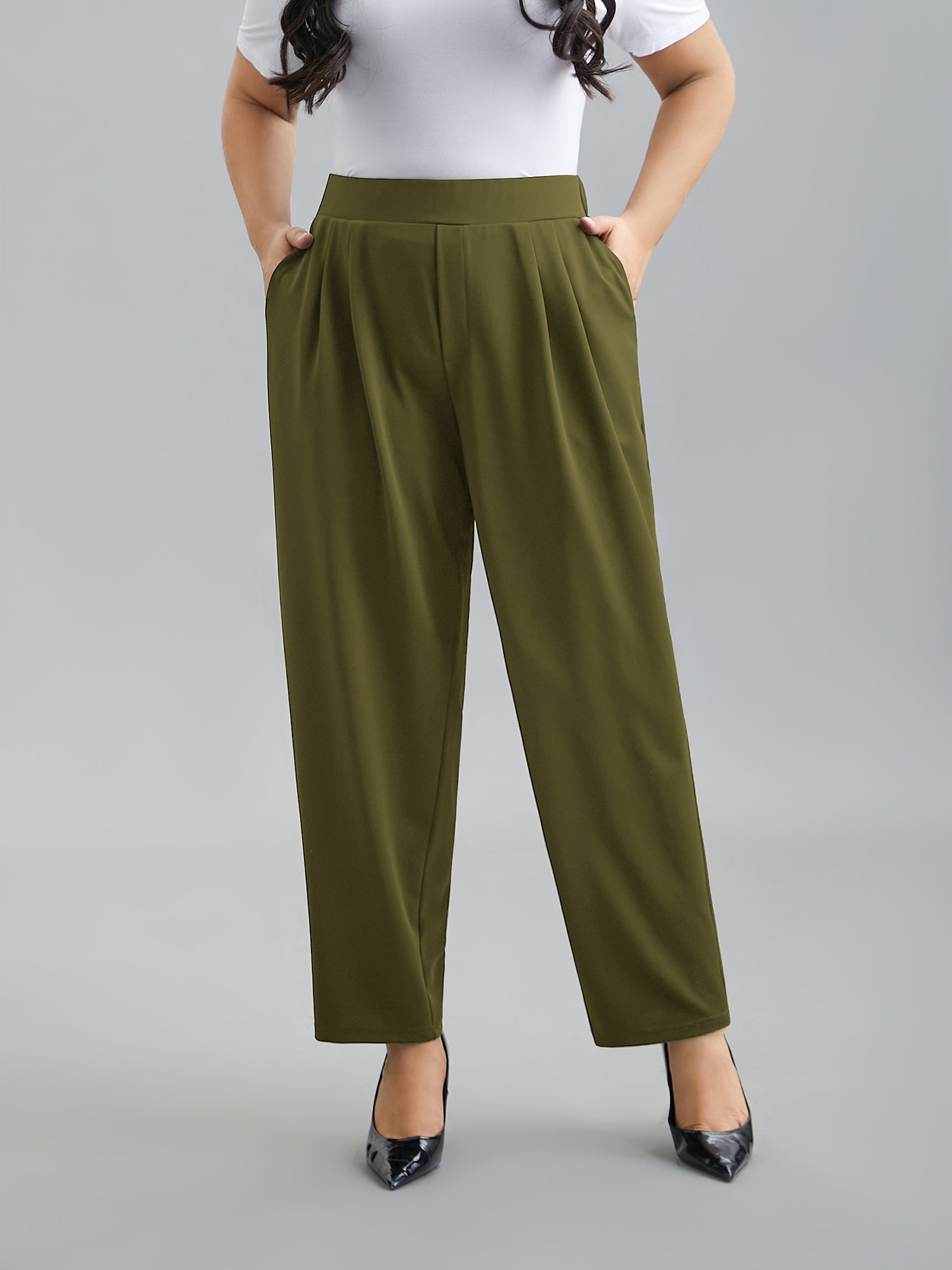 Stretchy-Waist Straight Leg Pants