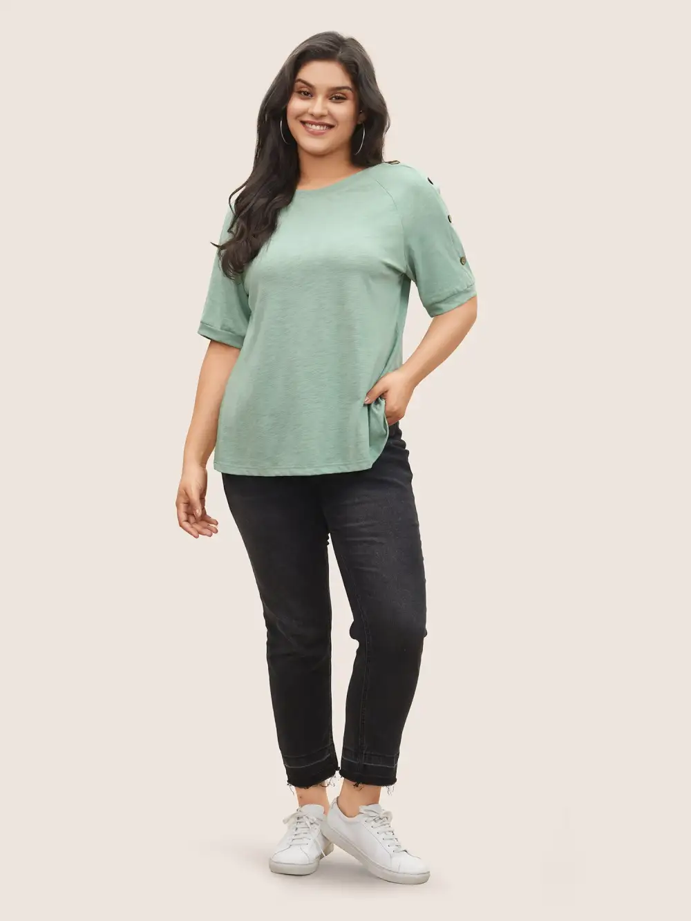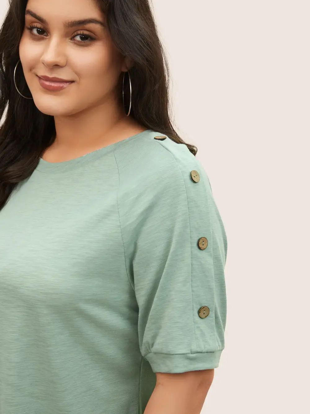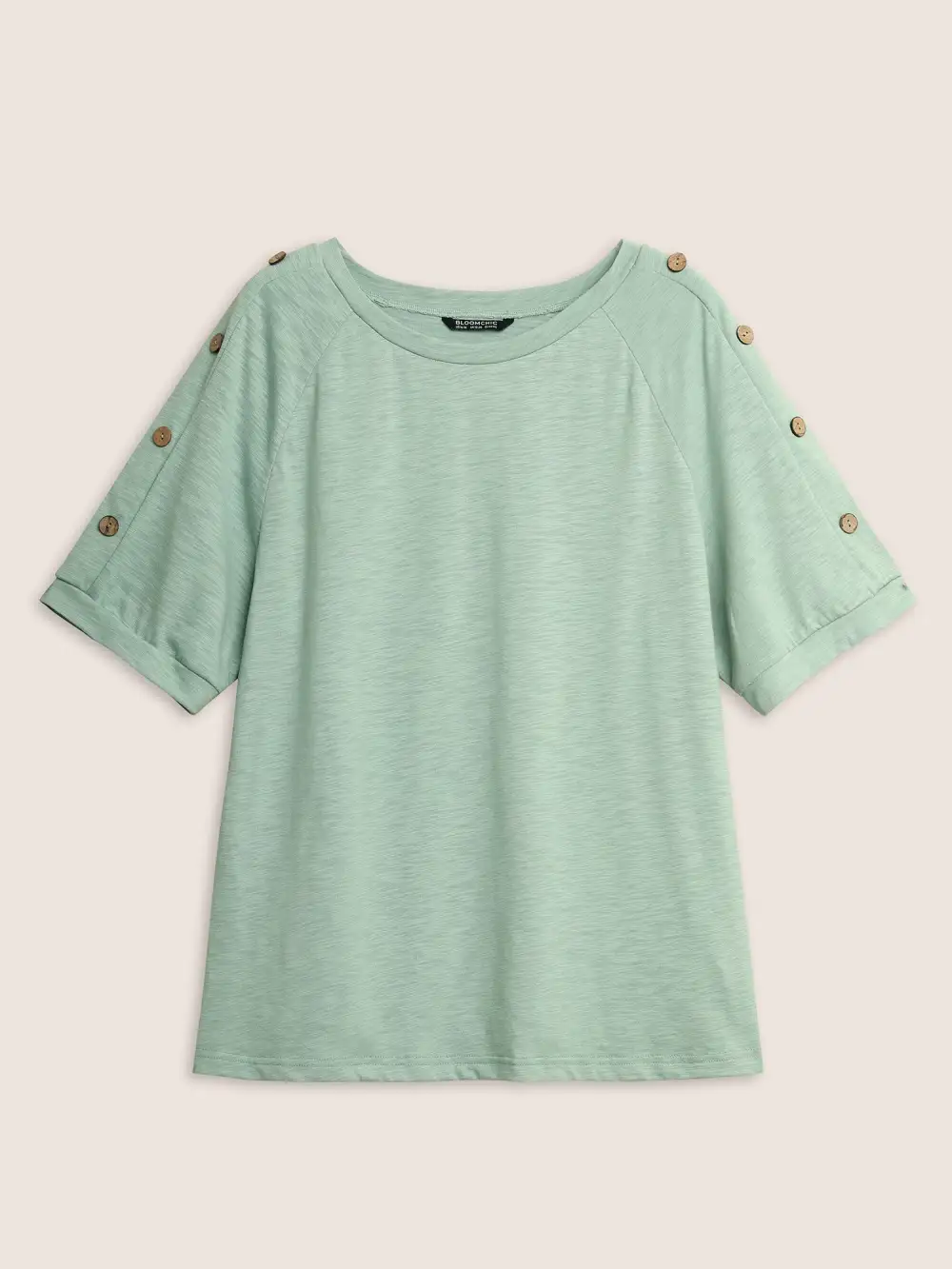 Plain Button Detail Raglan Sleeve T-Shirt